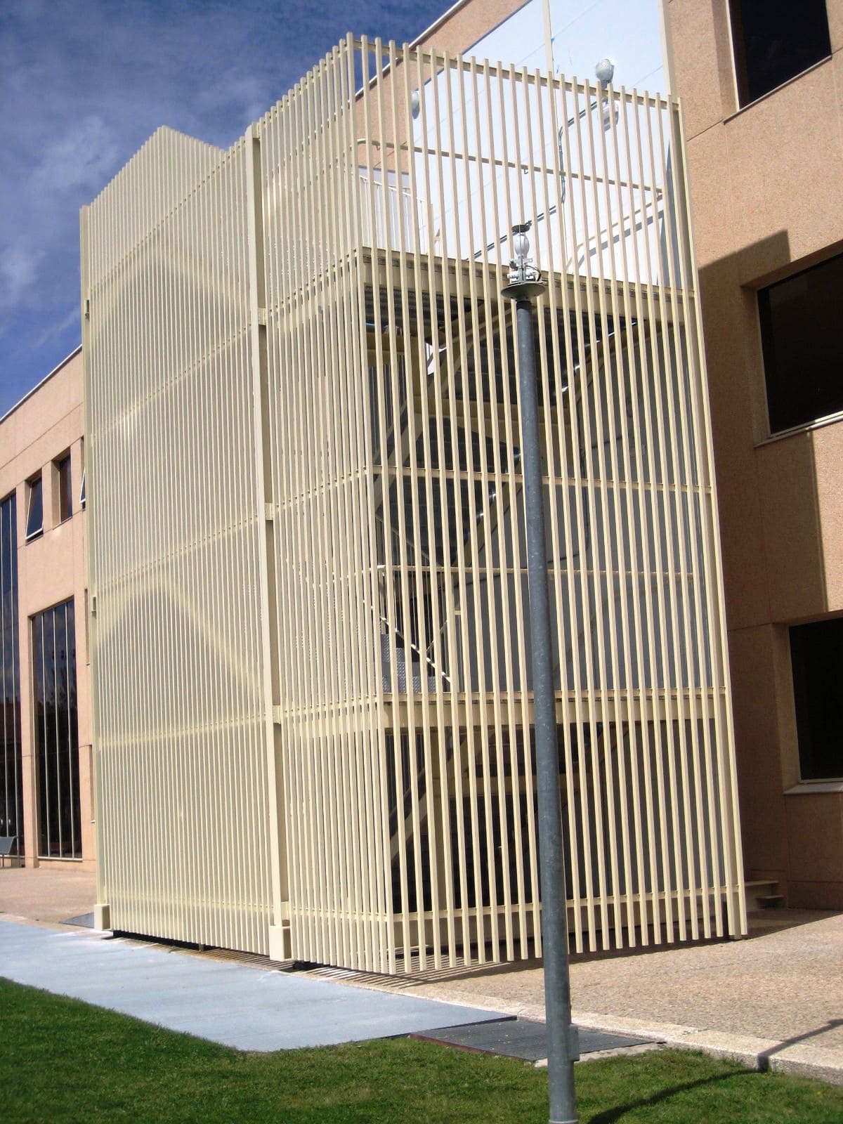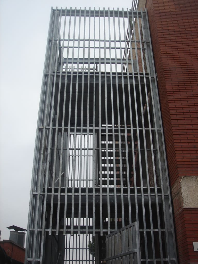 - Utilitzem materials resistents al foc i duradors per a la construcció de l'escala, com a acer galvanitzat.