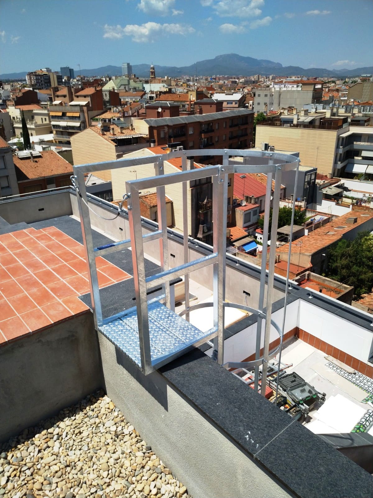 L’échelle fixe avec protection dorsale en 1 section, également appelée échelle à chat ou échelle à crinoline, est une échelle à cage pour l’intérieur ou l’extérieur. Il offre une sécurité totale à l’opérateur, qui sera entièrement protégé par un cadre circulaire composé d’anneaux métalliques et de sangles de protection dorsale. Il est particulièrement recommandé pour l’accès aux toits, aux terrasses, aux toits-terrasses, aux installations de panneaux solaires ou pour l’inspection en hauteur de diverses machines.