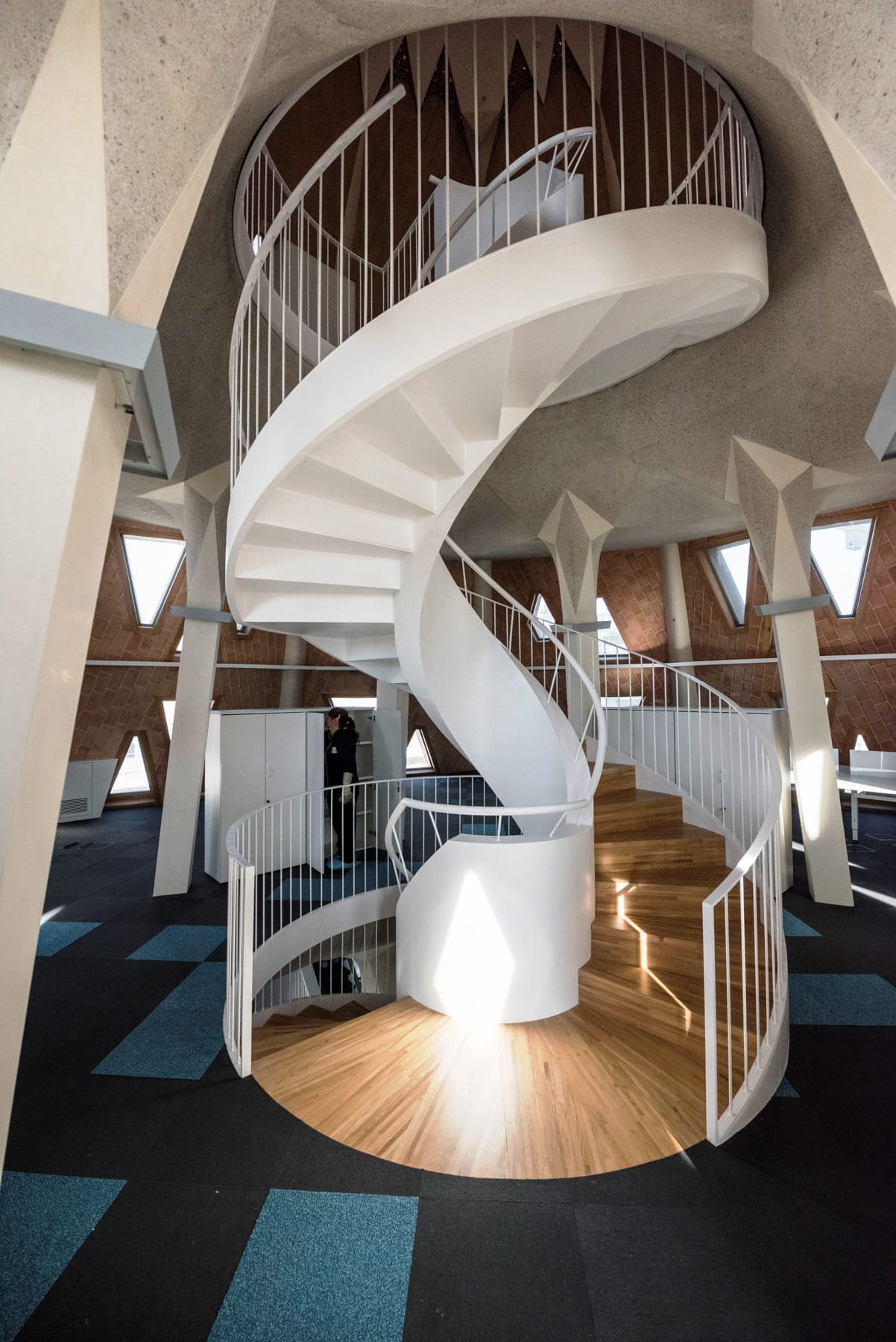 - Diseña una escalera de caracol de gran tamaño que ocupe un espacio central en el local, convirtiéndose en una característica destacada de tu espacio.